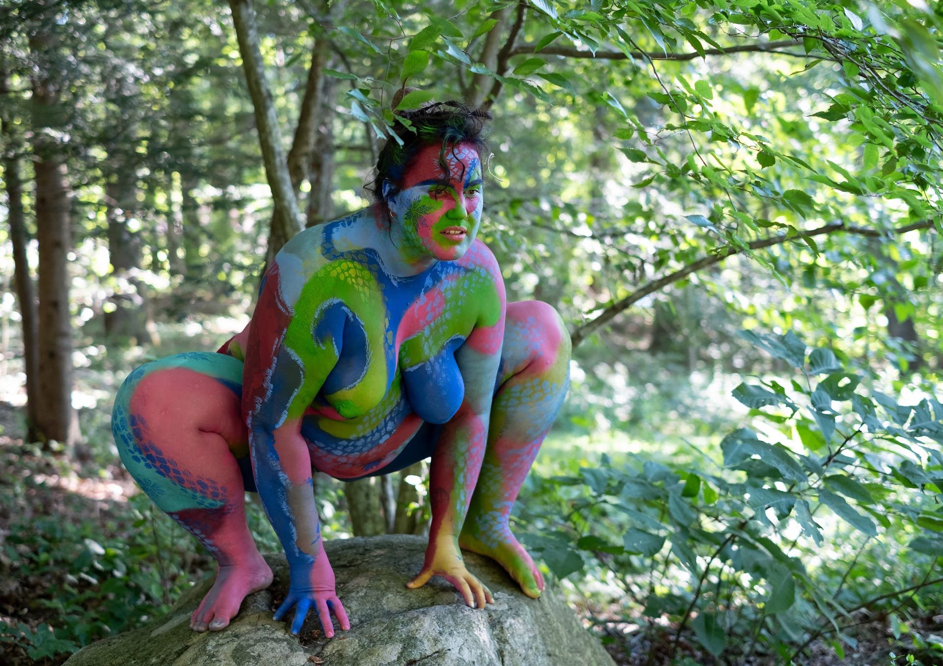 Die Vernissage war super klasse. Hier seht ihr Jennifer vor der Tanzperformance. Ich wollte Sie unbedingt nach der Bemalung noch in der Natur fotografieren. Zur Eröffnung tanzte sie vor einem staunenden Publikum.