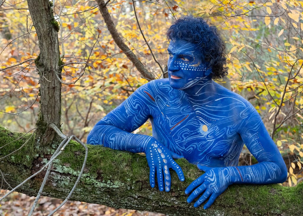 Aber schau Dir die Bilder an. Es ist ein wunderbares Gefühl, wenn man in den Spiegel schaut und ein ganz anderer Mensch schaut einen an – alles durch diese wunderbare Körperbemalung.